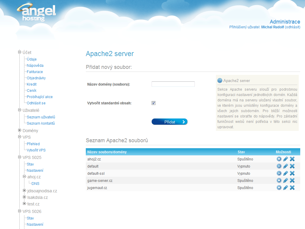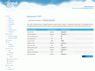V administraci je připravena správa LAMP aplikací - tedy Apache, MySQL i PHP. V sekcích můžete detailně nastavit parametry serveru tak, aby přesně vyhovovaly
