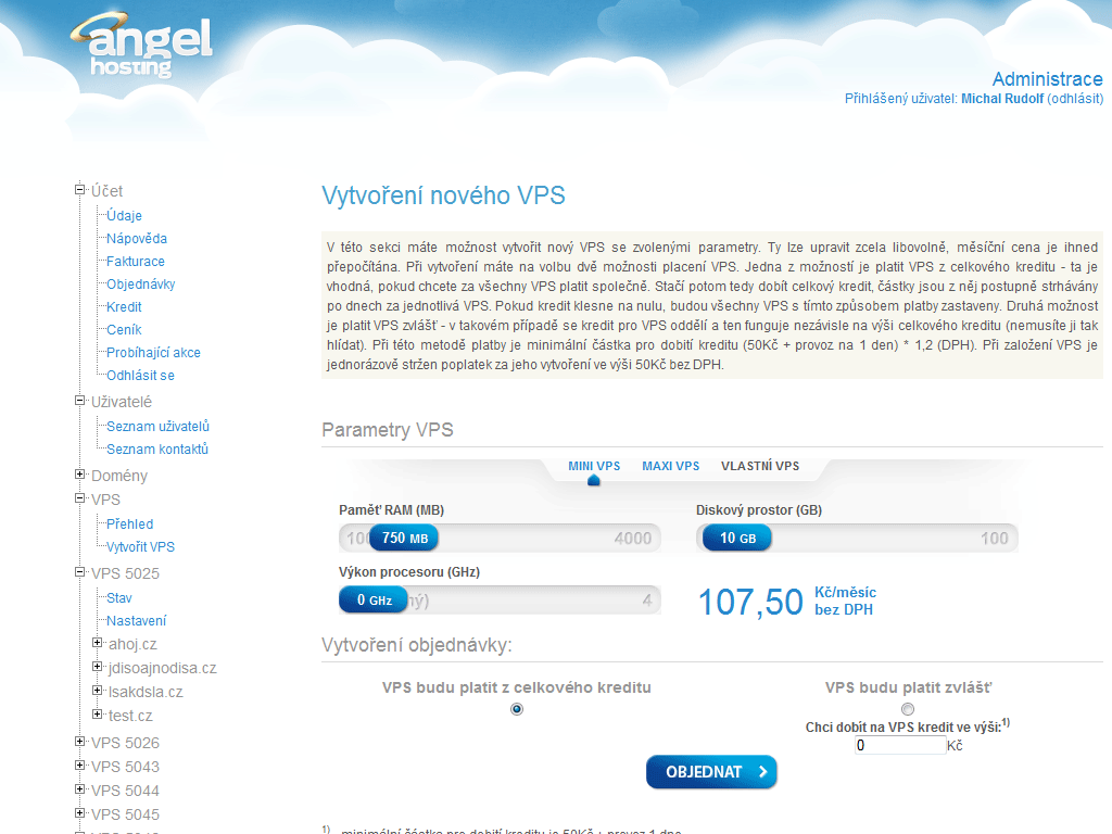 V administraci můžete kdykoliv vytvořit nový VPS - třeba když si potřebujete vyzkoušet nastavení nějaké aplikace nebo spustit testovací verzi projektu. Každý