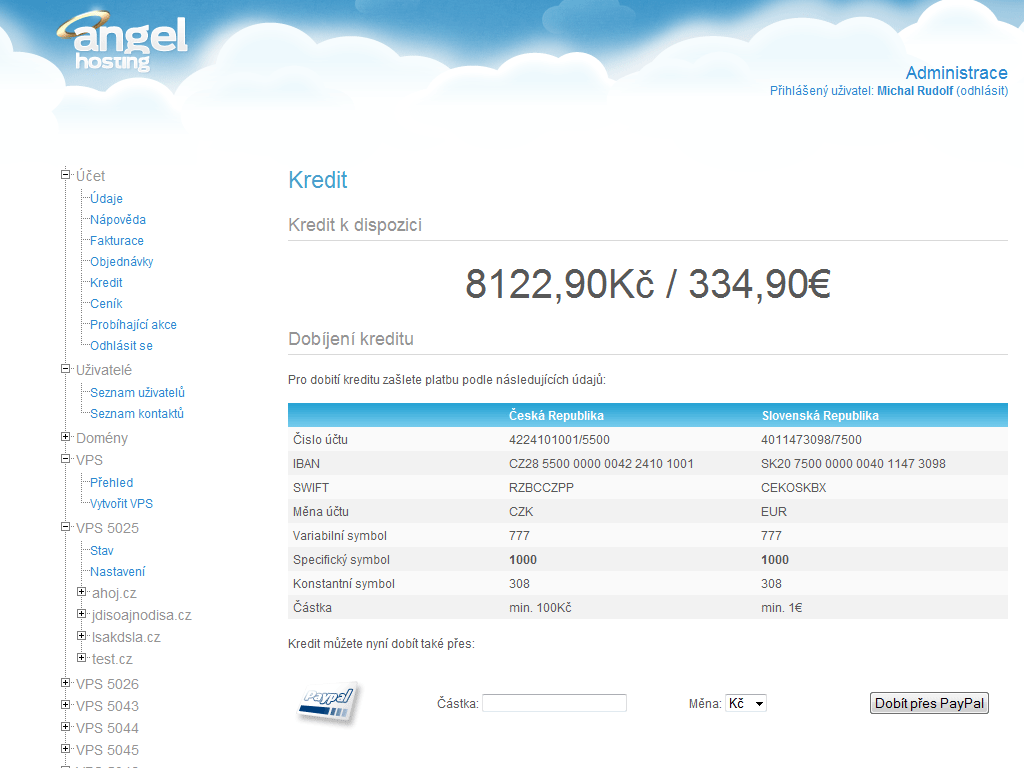 pouze jednu platbu, můžete využít funkci globálního kreditu. Parametry VPS lze kdykoliv v průběhu hostování měnit, změna proběhne automaticky do 1 minuty